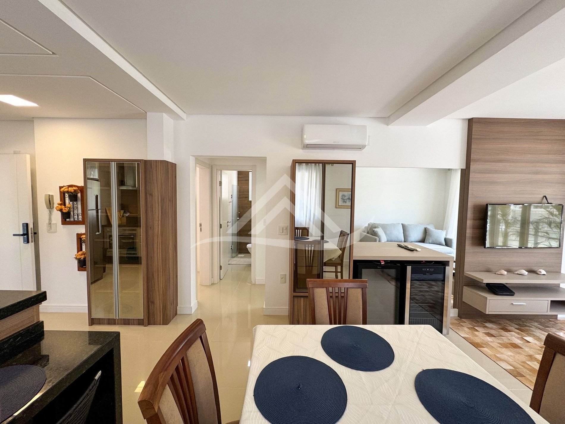 Excelente localização. Lindo apartamento de 2 dormitórios sendo 1 suíte, 3 ar condicionados Split (suíte, dormitório e sala), cozinha planejada completa, internet de alta velocidade, Smart TV, máquina de lavar roupa, máquina de secar roupa e 2 vagas de garagem.