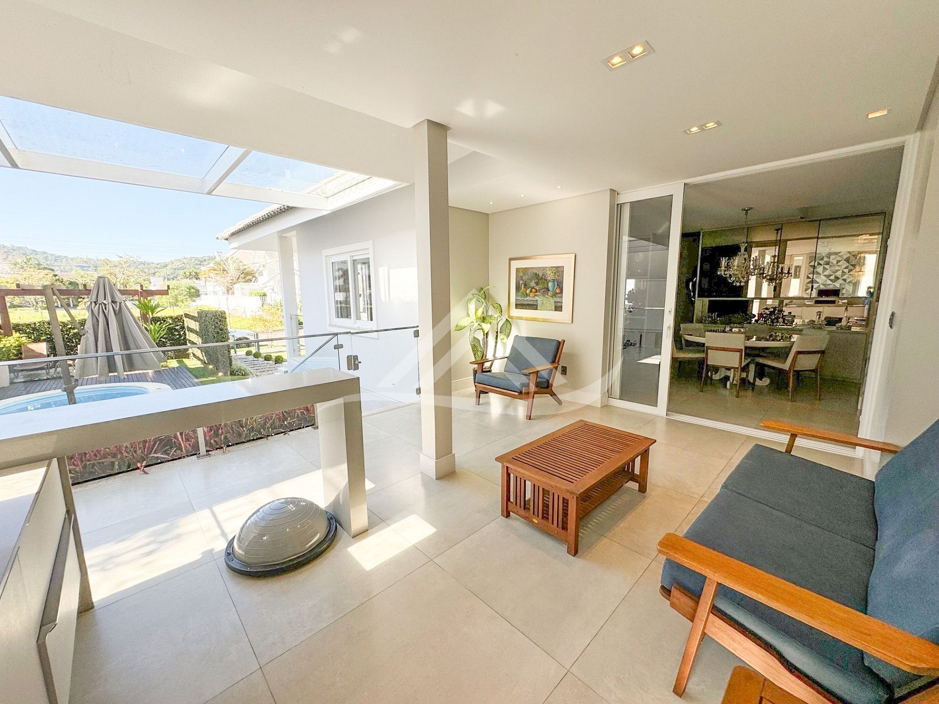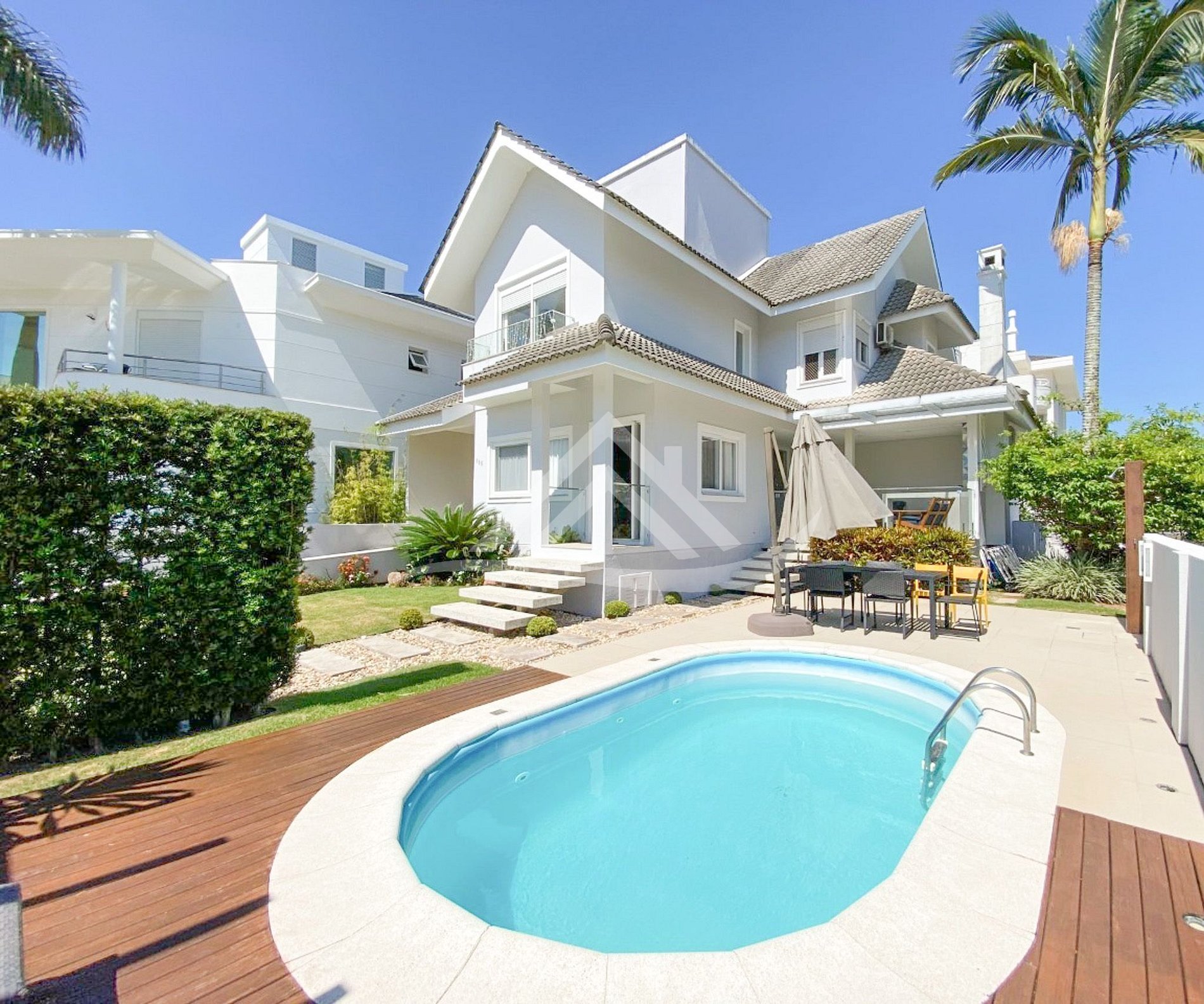 Conforto total em Jurere Internacional!! Excelente casa com 4 suítes, ar condicionado Split em todos os ambientes, aquecimento solar, piscina, ampla área de churrasqueira, internet WIFI de alta velocidade, TV a cabo digital, televisão em todas as suítes, alarme, cozinha completa, máquina de lavar roupa, máquina de secar roupa, 3 vagas de garagem e excelente manutenção.
