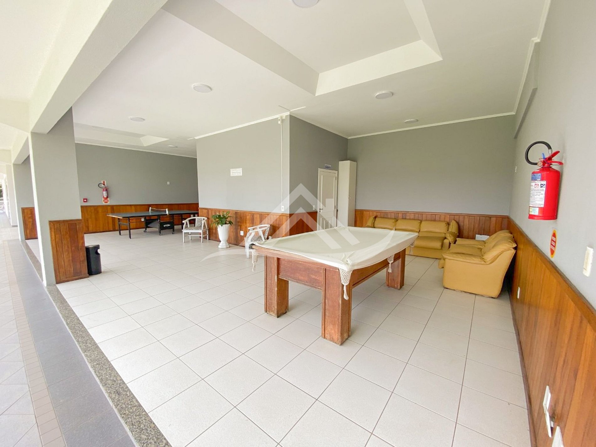 Salão de jogos e parquinho infantil.