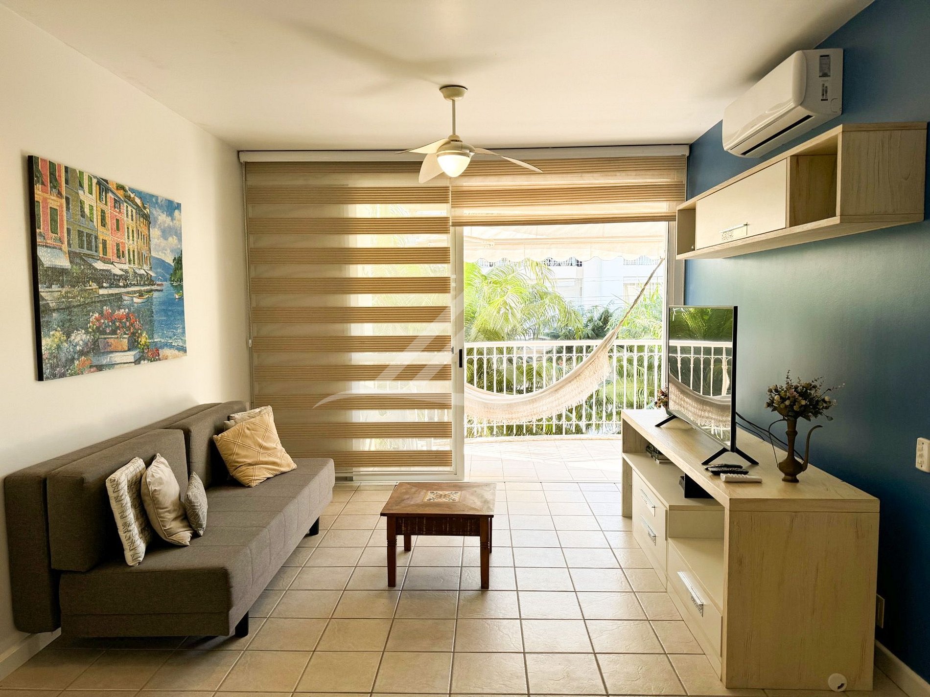 Hermoso y amplio apartamento de 1 habitación, 1 baño, 2 aires acondicionados SPLIT (habitación y sala de estar), cocina completa, internet WIFI, TV por cable, balcón con parrilla, hamaca, 2 sillas de playa, sombrilla, lavadora , secadora, piscina y garaje para 1 automóvil.