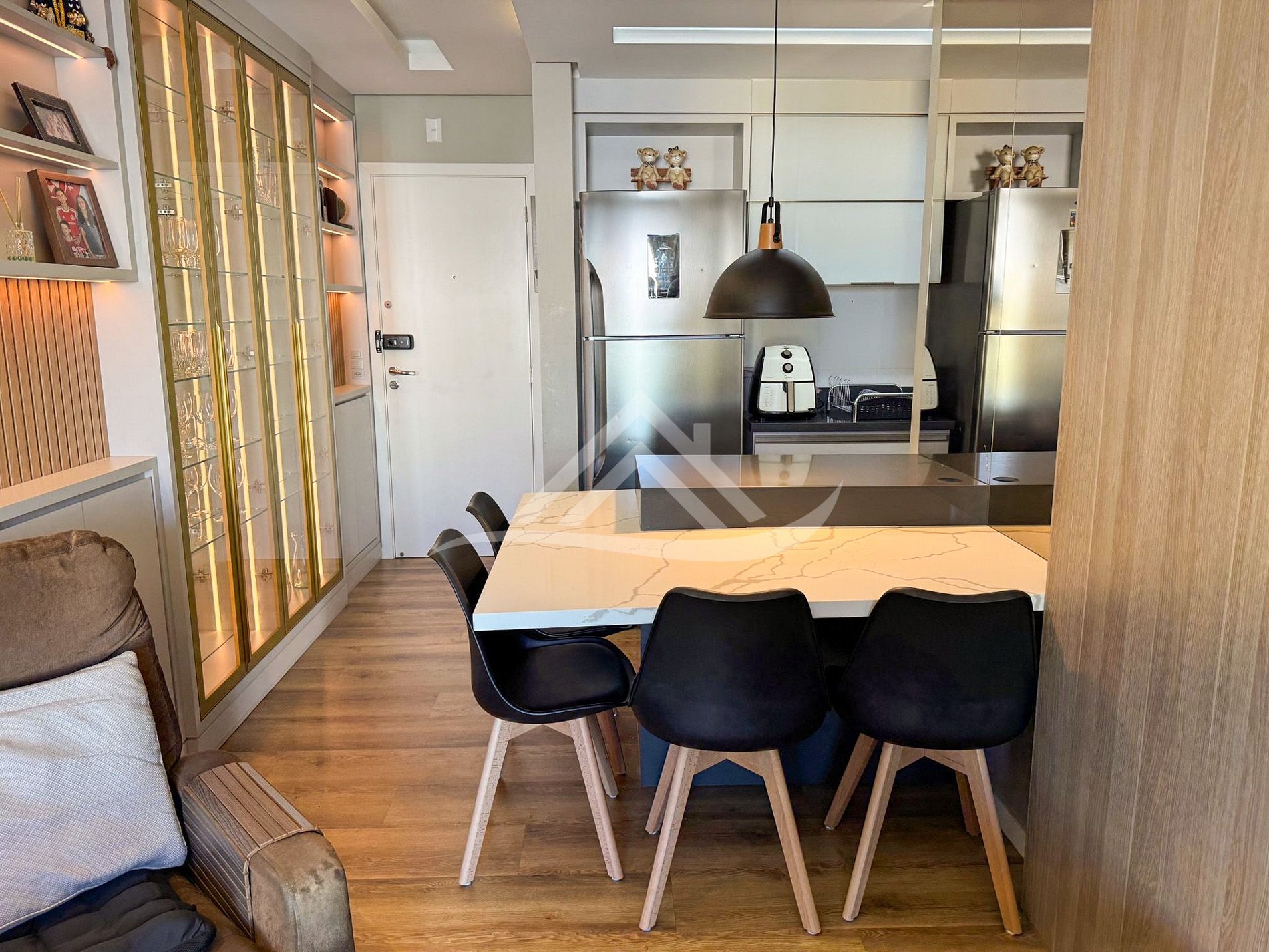 Área de estar com sofá/cadeira